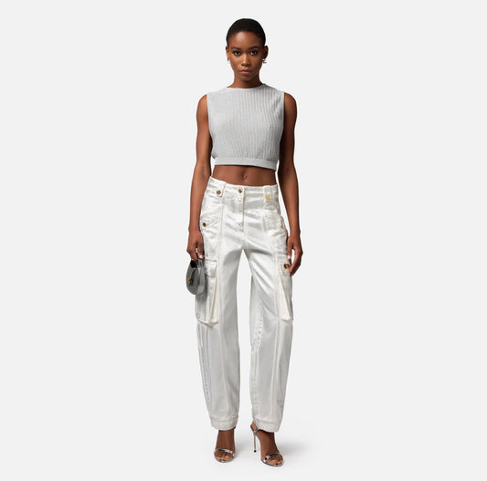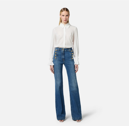 Pantalón palazzo de crepé rombo con cadena Elisabetta Franchi