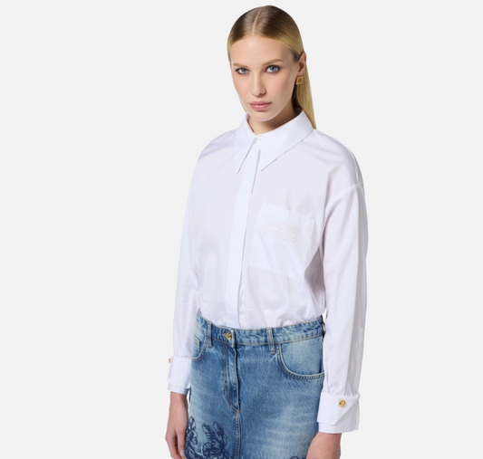 Camisa de popelina con bolsillo pequeño bordado Elisabetta Franchi