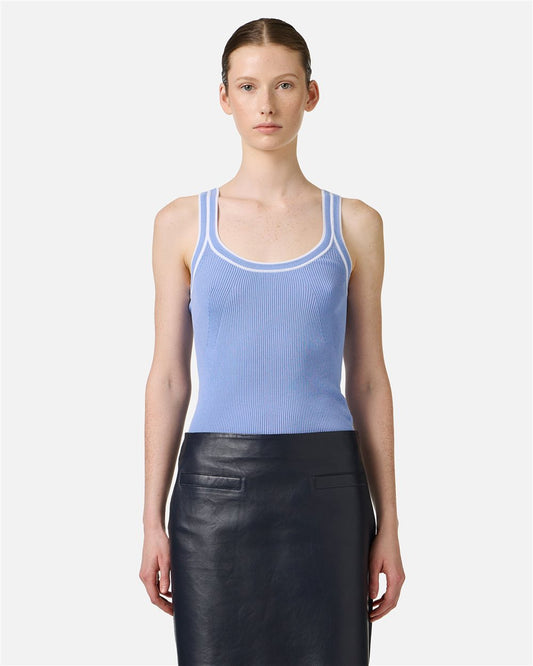 Camiseta de tirantes de canalé azul empolvado en algodón elástico