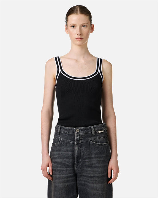Camiseta de tirantes de canalé negro en algodón elástico