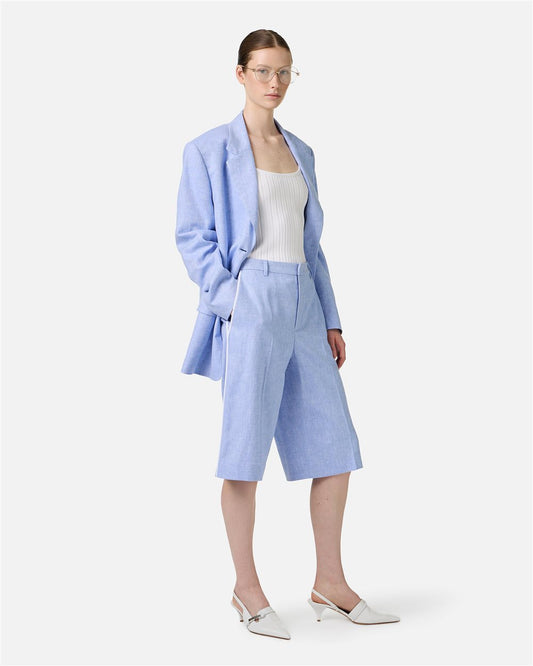 Bermudas de corte regular azul claro en tejido de mezcla de lino en diagonal