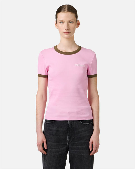 Camiseta ajustada de punto acanalado rosa con estampado de iceberg