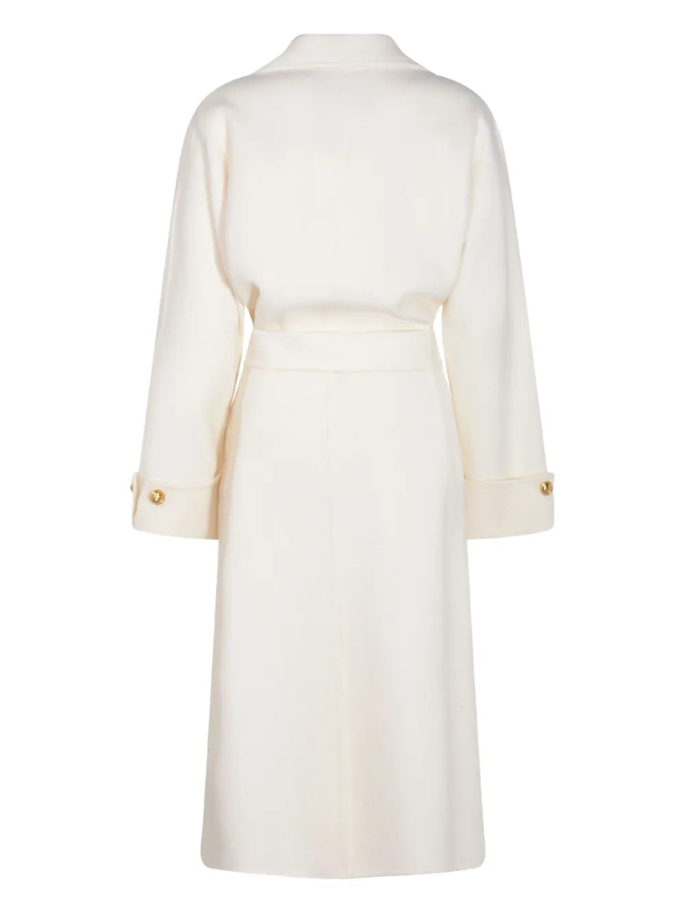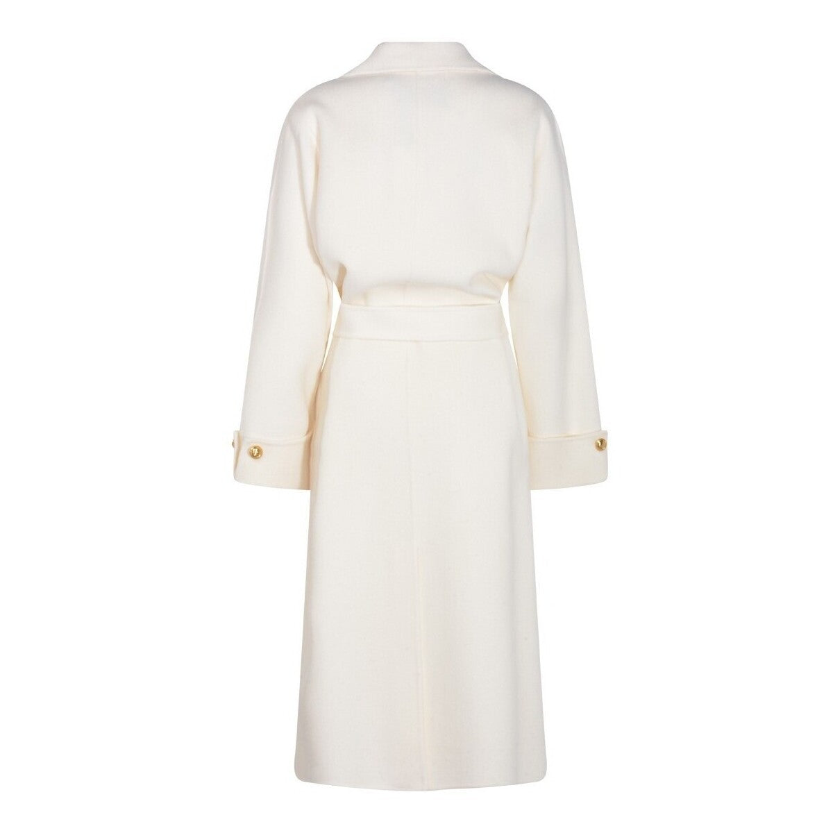Abrigo batín de paño de mezcla de lana double, sin forro y de talla oversize. Con solapa, vuelta en las mangas y bolsillos de parche, presenta un cierre con cinturón para marcar la cintura con suavidad. La etiqueta con logotipo y los botones de metal dorado en los puños añaden toques de luz.