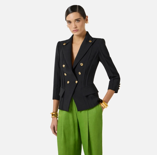 Chaqueta de doble crepé elástico con motivos sin rematar