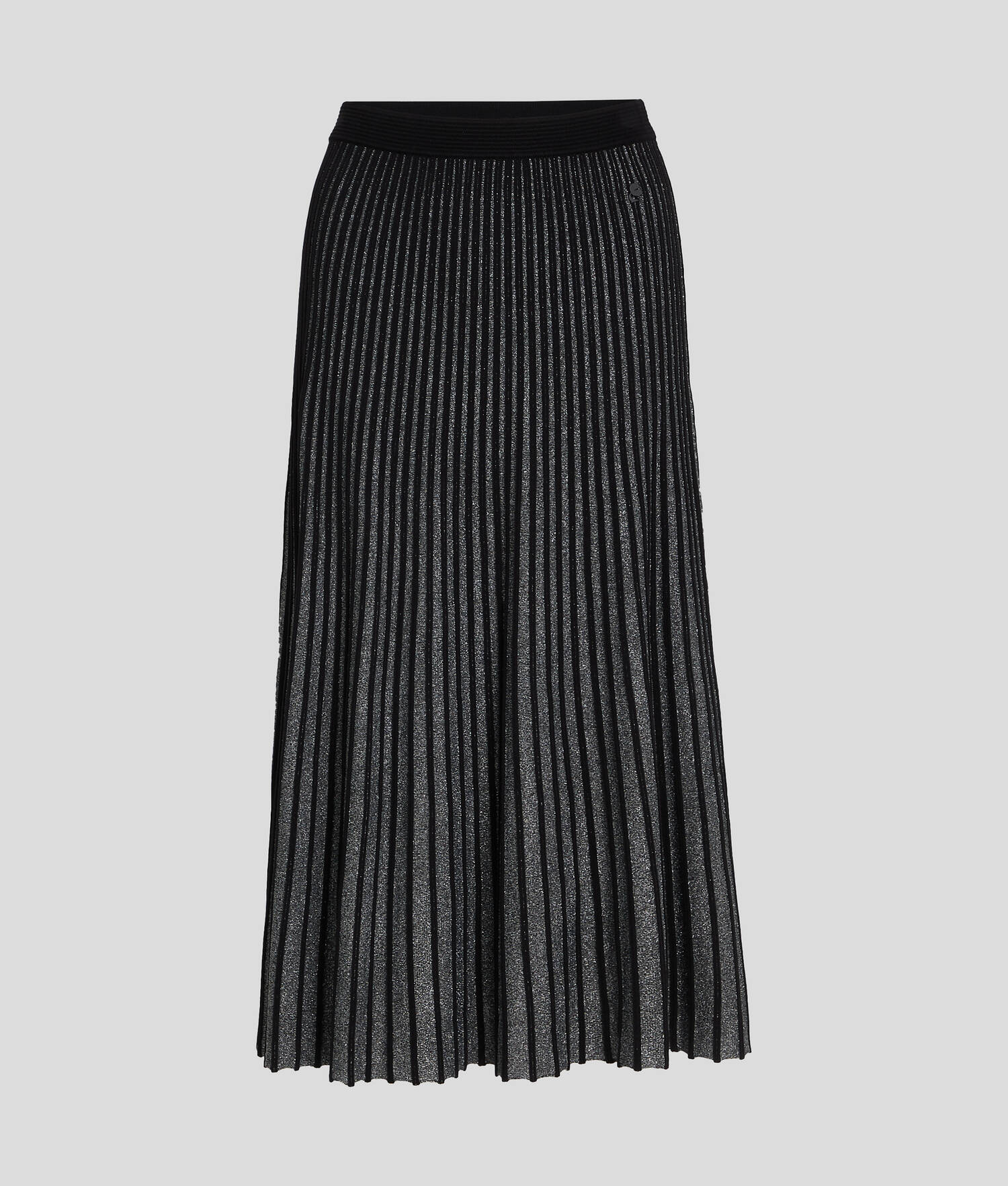 Esta falda midi de KARL LAGERFLED presenta una silueta fluida con hilos metalizados brillantes y es un favorito ideal para crear looks de día y de noche. La cintura elástica con la marca ofrece comodidad con un toque del emblemático ADN de KARL.