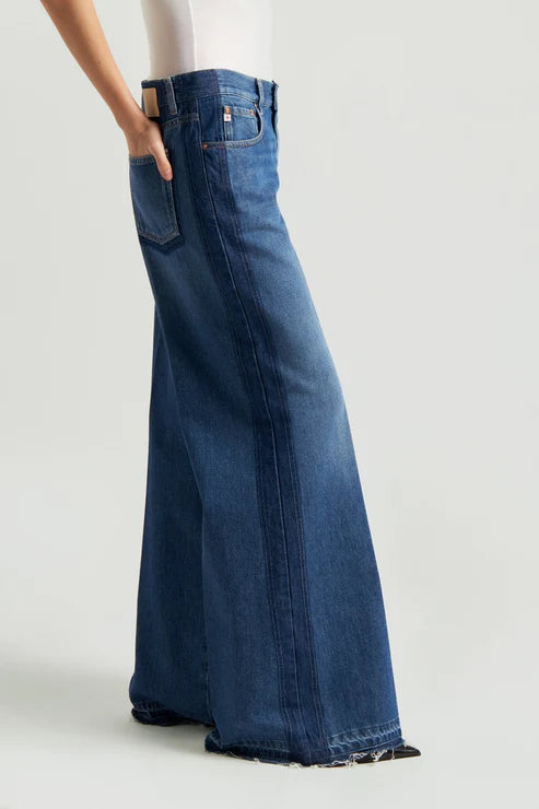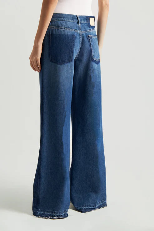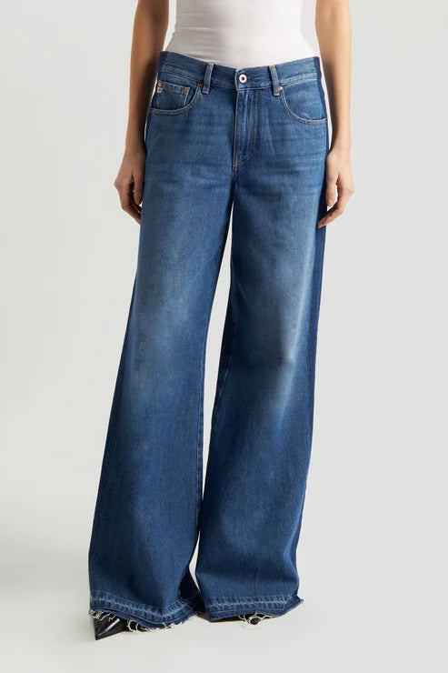 El pantalón vaquero Hyeres de pierna ancha presenta un corte extra ancho y cintura alta para una silueta favorecedora y estilizada. Su forma relajada crea un look moderno y desenfadado, con un bajo sin rematar para un toque informal. Perfecto para combinar con tops minimalistas o camisas oversize.