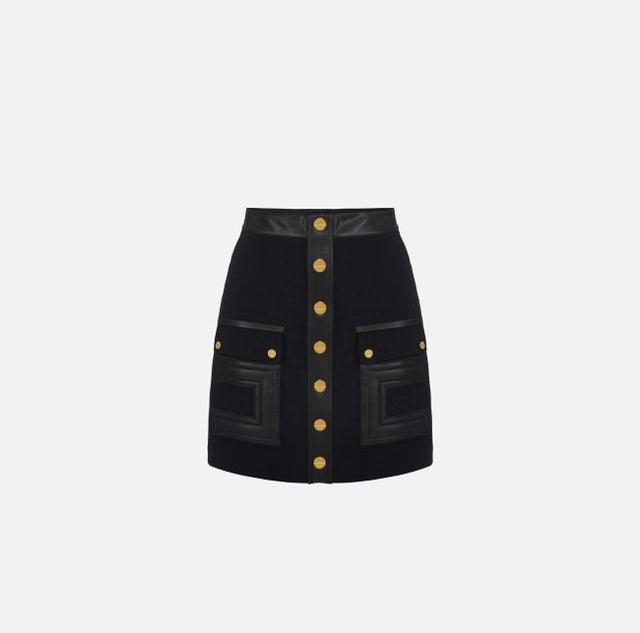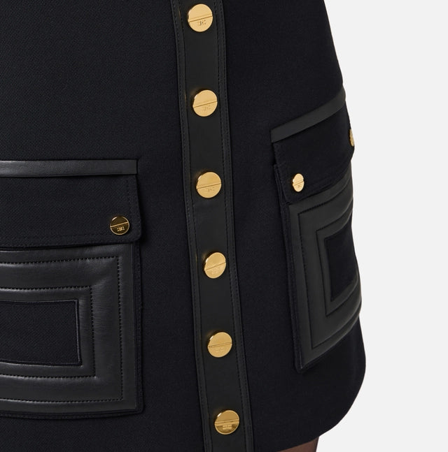 Minifalda de doble crepé de talla regular. Se caracteriza por los detalles a tono que brindan luz y los bolsillos de parche adornados con logotipos en relieve. Los botones de metal dorado con logotipo iluminan la prenda.