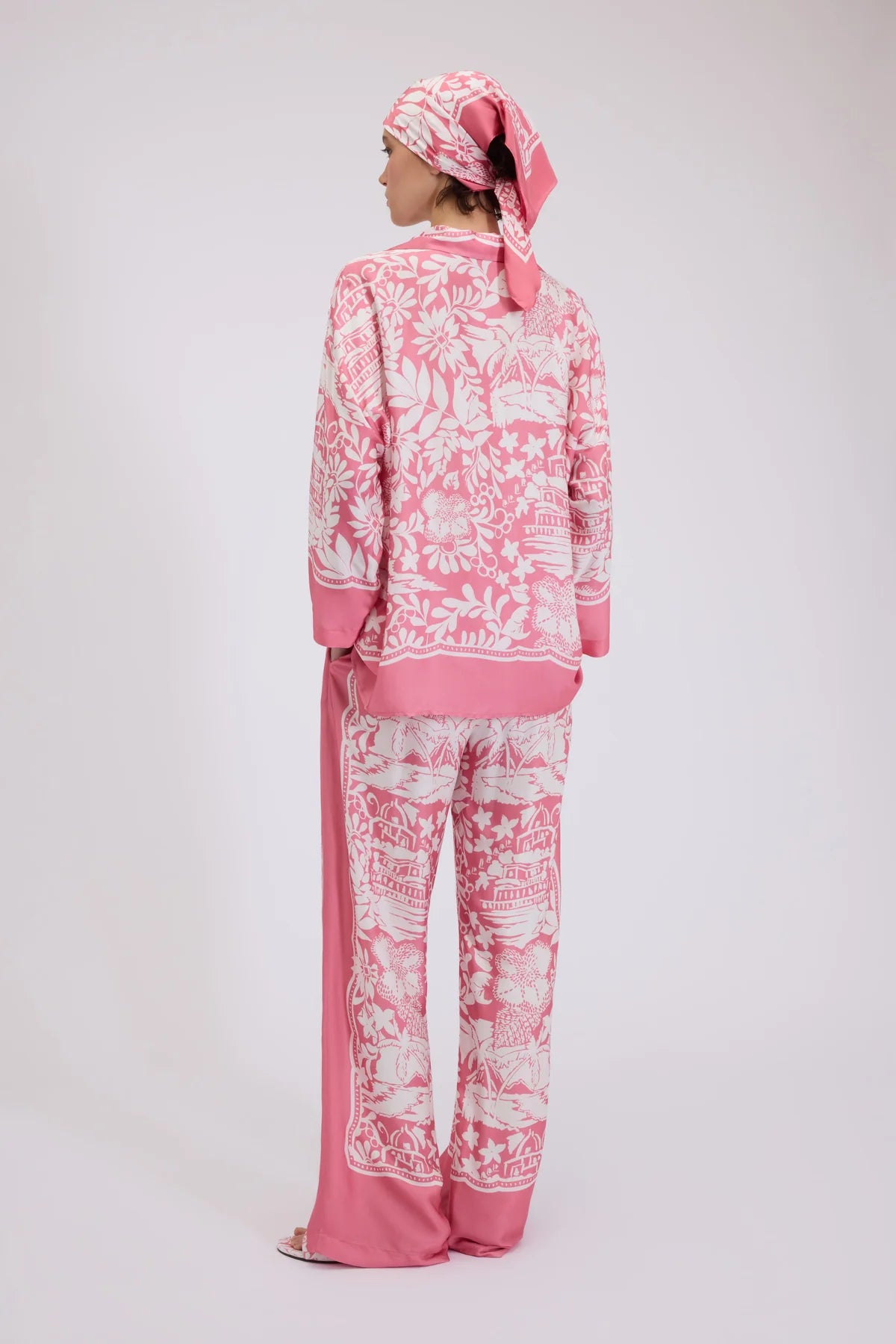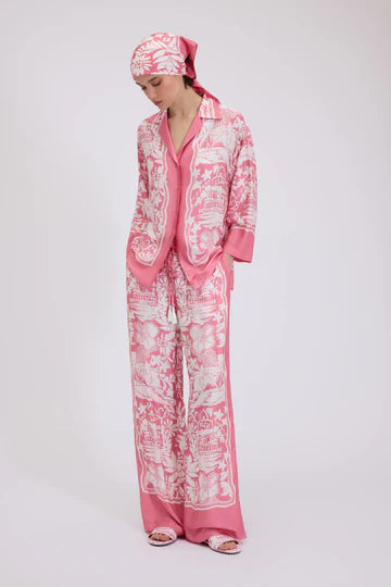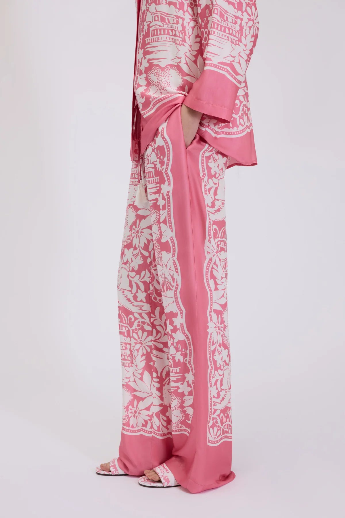 PANTALONES DE VISCOSA SATÉN CON ESTAMPADO TROPICAL