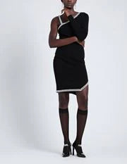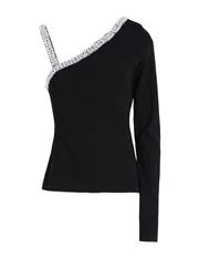 top con un solo hombro, tejido en punto, punto ligero, liso con aplicaciones, cuentas, logotipo de la marca, asimétrico.